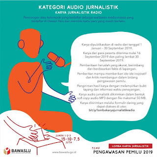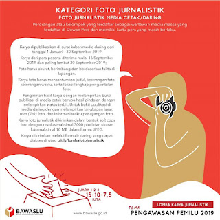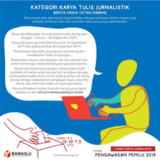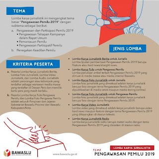 Ciptakan karya terbaikmu dengan mengangkat tema “Pengawasan Pemilu 2019” dan subtema: