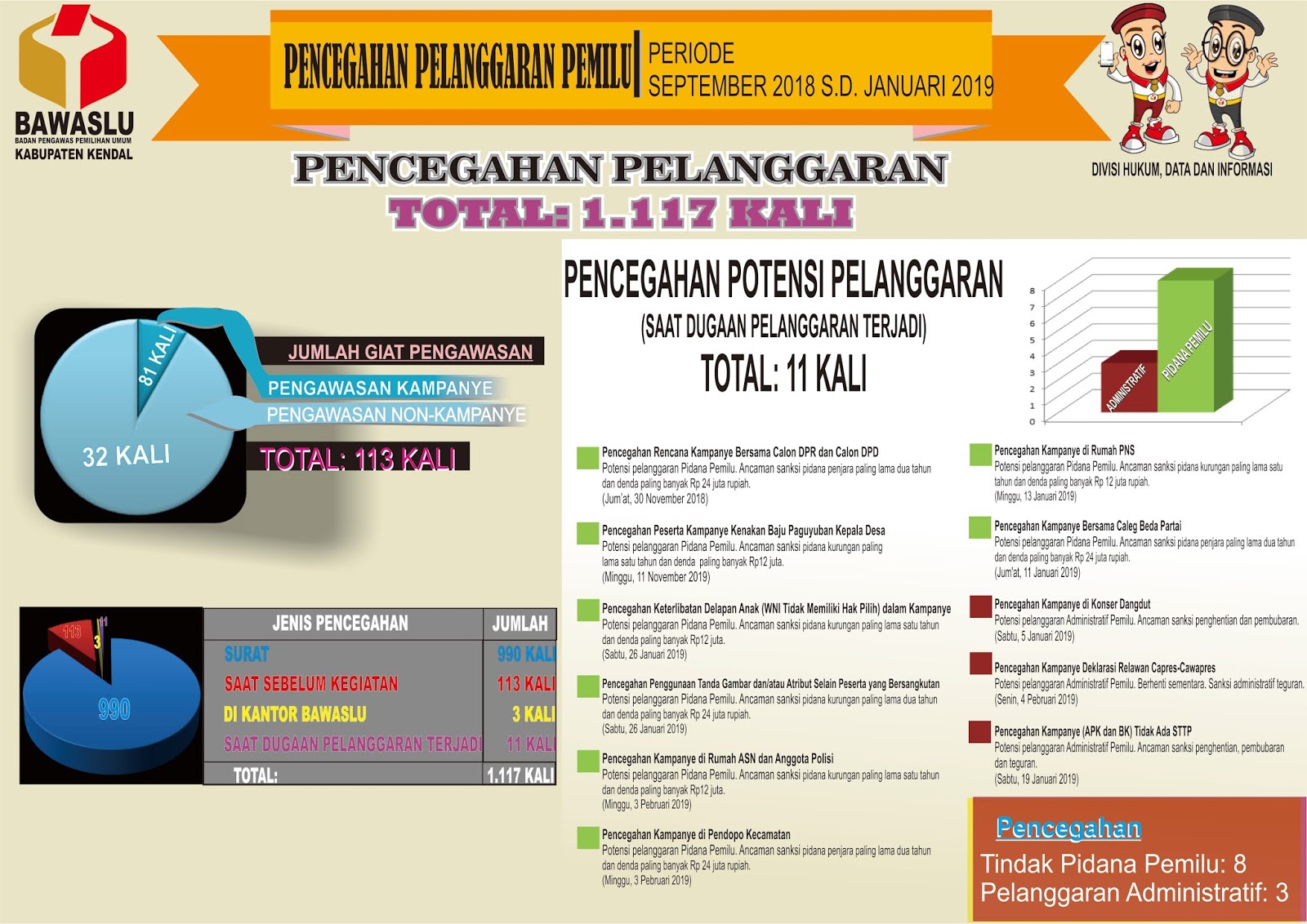 KENDAL-Bawaslu Kabupaten Kendal melalui Divisi Hukum, Data dan Informasi menyampaikan data bahwa pihaknya telah ribuan kali melakukan pencegahan pelanggaran dalam Pemilu serentak 2019.