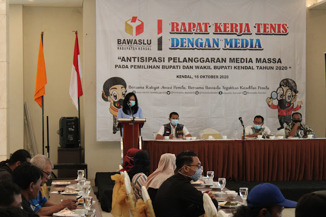 KENDAL, Bawaslu – Pers atau media massa dapat melakukan pelanggaran dalam gelaran Pilbup Kendal 2020. Sebagai langkah antisipasi, Bawaslu Kendal gelar Rakernis dengan Media tentang “Antisipasi Pelanggaran Media Massa Pada Pemilihan Bupati dan Wakil Kendal 2020, Jum’at, (16 Oktober 2020), di Sae Inn.