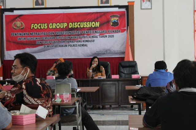 KENDAL, Bawaslu – Ketua Bawaslu Kendal sampaikan materi mengenai pentingnya netralitas dan profesionalitas penyelenggara Pemilu kepada jajaran KPU Kendal. materi ini disampaikan oleh Ketua Bawaslu Kendal Odilia Amy Wardayani yang disampaikan dalam acara FGD bertema Pentingnya Netralitas dan Profesionalitas Penyelenggara Pilkada untuk Suksesnya Pemilihan Bupati dan Wakil Bupati Kendal Tahun 2020 yang diseelengarakan Polres Kendal dengan peserta Panita Pemilihan Kecamatan (PPK) se-Kabupaten Kendal, Jumat, (10 Juli 2020) siang.