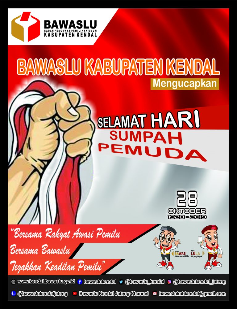 Selamat Hari Sumpah Pemuda humas | Senin, Oktober 28, 2019 - 00:53 Tag BERITA Share Berita Terkini humas Rabu, Januari 28, 2026 - 10:14 Bawaslu Kendal Ikuti Rapat Pembinaan dan Evaluasi Nasional, Bawaslu RI Fokus Perkuat Kelembagaan dan Integritas Aparatur humas Jumat, Januari 23, 2026 - 15:20 Perkuat Budaya Kerja Sehat, Bawaslu Kendal Gelar Program Jumat Sehat humas Jumat, Januari 23, 2026 - 15:14 Bawaslu Kendal Ikuti Evaluasi LHKPN 2024 dan Sosialisasi Pelaporan Tahun 2025 Lihat Lainnya